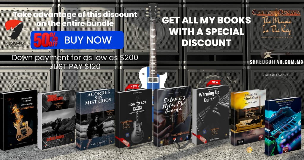 Métodos y Clases Personalizadas: Accede a métodos exclusivos de guitarra y clases personalizadas con Carlos Osnaya. Aprende de la mano de un maestro y mejora tu técnica y comprensión musical con sus enseñanzas.